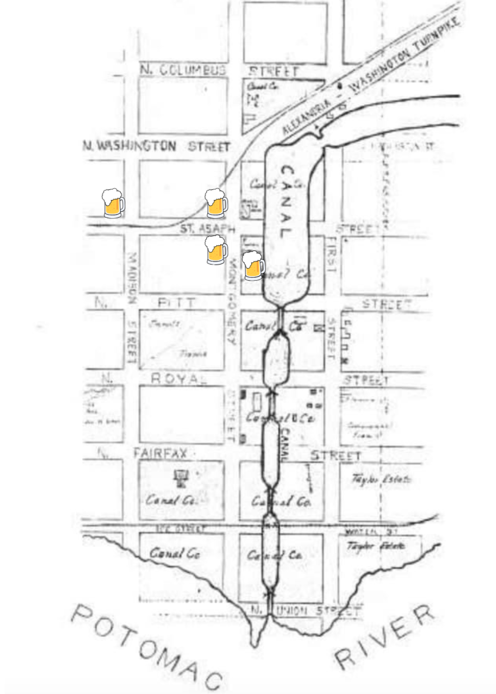 NOTICe has partnered with some of Old Town North’s favorite bars and restaurants to present the history of the Alexandria Canal while enjoying a frosty beverage. Interestingly, three of the four participating restaurants are right on top of old canal!